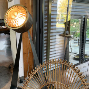 LA CANNE – Lampe métal, pied réglable abat-jour récup